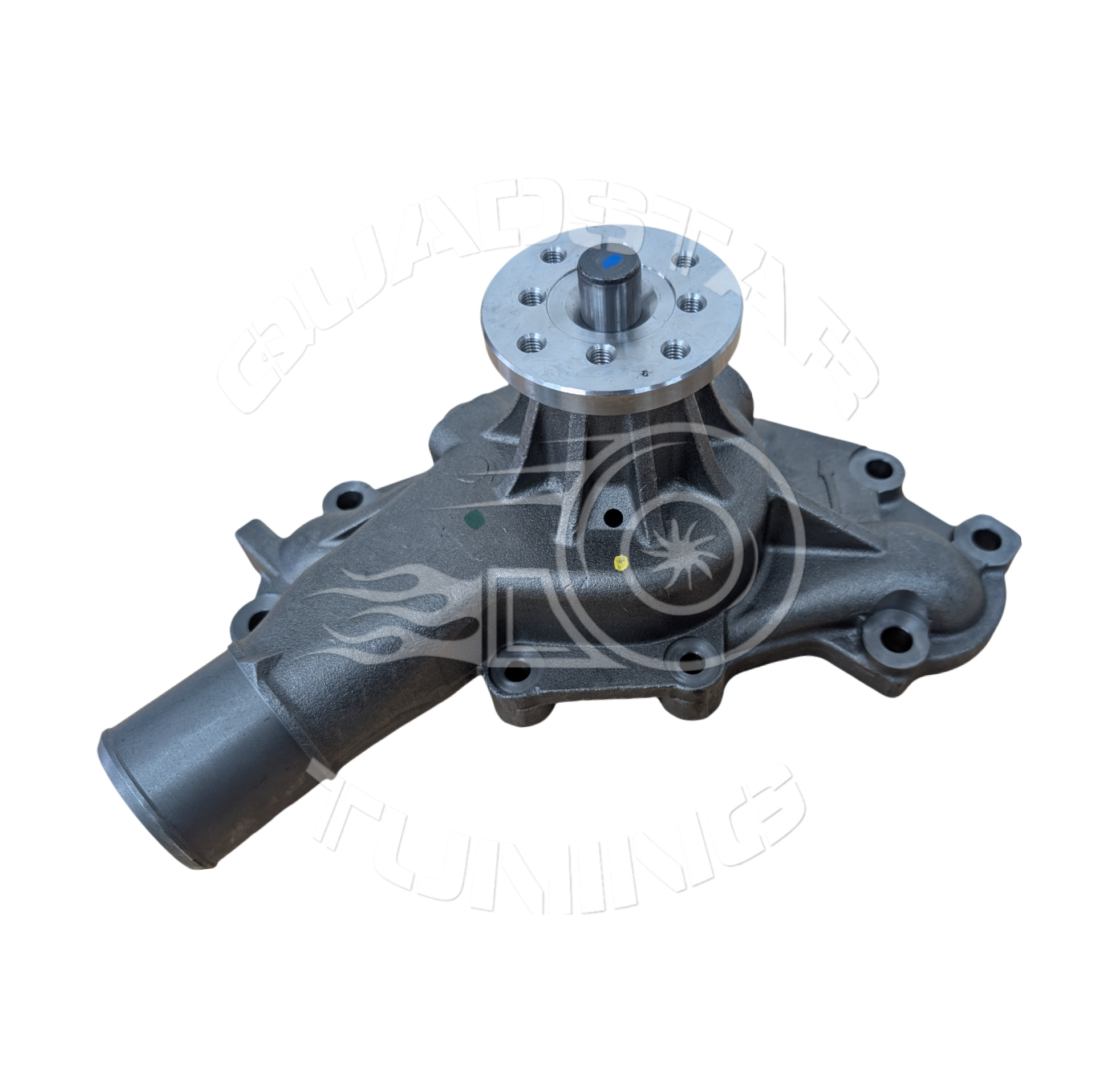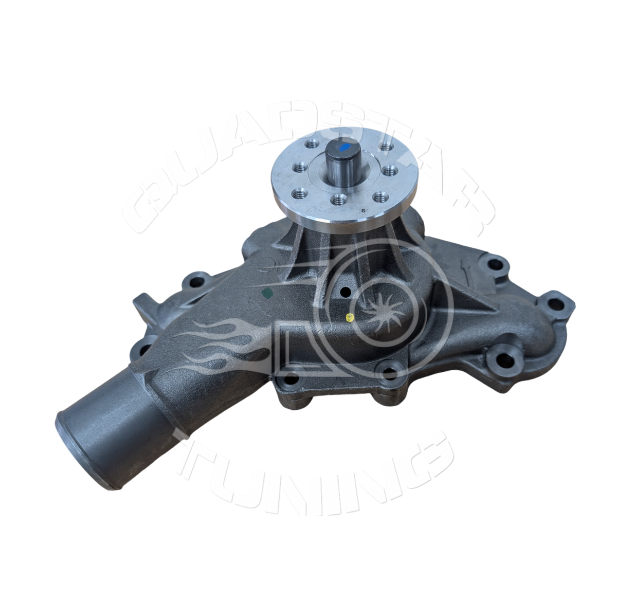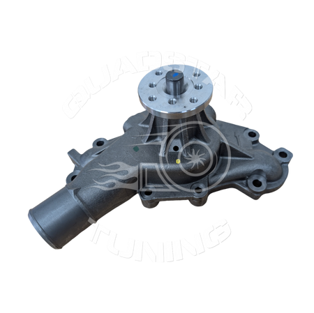 This pump features a custom billet impeller designed to optimize flow precisely. Included are a gasket and a billet water pump bypass restrictor fitting