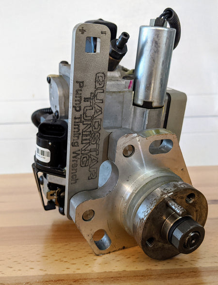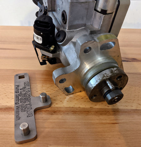 Put the pry bar down and use our custom made injection pump wrench to make adjusting your DB or DS injection pump a breeze! Simply slide the tool into the existing slots and use a 3/8" breaker bar or ratchet to get the leverage required to rotate the pump. The positive engagement gives you precise control over pump placement so you won't have to fight to make small adjustments during the TDCO learn process on a DS4 or when adjusting base timing advance on a DB2. Laser engraved + and - symbols ensure you'll never forget which way to rotate the pump for TDCO adjustments